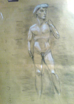 Sudents used Michelangelo's statue of "David" as their study and based their drawing on the 7.5 cannon proportion ratio.