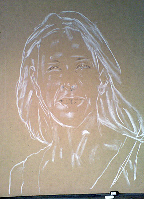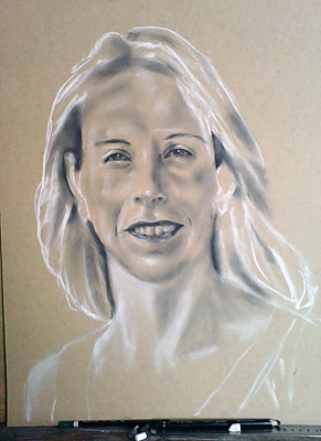This chiaroscuro portrait of Fiona shows its development - Chalk and Charcoal on MDF Board - (45cm x 60cm)
