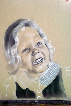This chiaroscuro portrait of Matilda shows its development - Chalk and Charcoal on MDF Board - (60cm x 45cm)