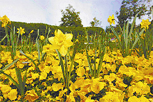 The Lakes Walk is where you will see the cascading waterfall with Snapdragons, Pansies, Polyanthus, Cornflowers and Larkspur planted on its banks. The 30,000 Daffodil bulbs create a picture perfect atmosphere – venture onto the island and take a seat under the Weeping Willow tree so you can take in all the splendour of the garden– all combining to create “A World of Colour”.