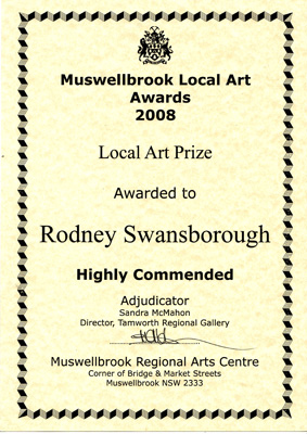 Rodney and the art students from the Upstairs Art Studio will be having an exhibition at the Muswellbrook Regional Arts Centre in September 2009.