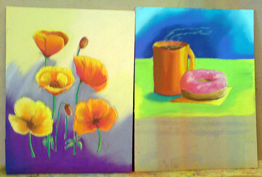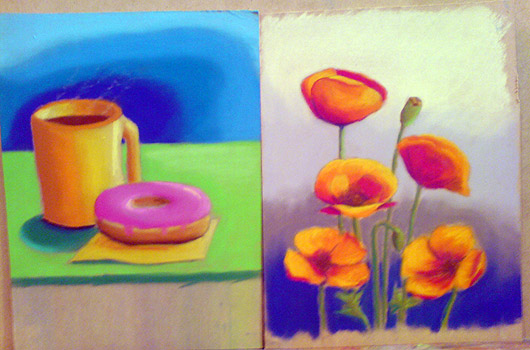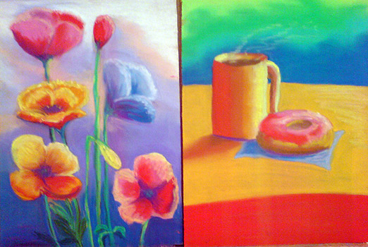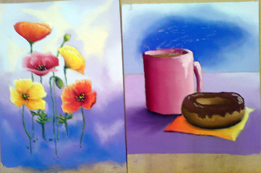 Rodney Swansborough conducted a two-day workshop with 8 students where they were taught the basic techniques of pastel painting. Below are examples of their pastel painting exercises on prepared mdf board.